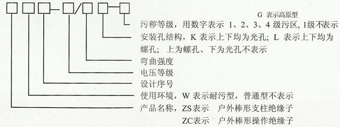 表示戶外棒形支柱絕緣子、耐污性、設(shè)計序號為2、220kv電壓等級、16kN彎曲強(qiáng)度、上下法蘭均為光孔、用于3級污區(qū)。