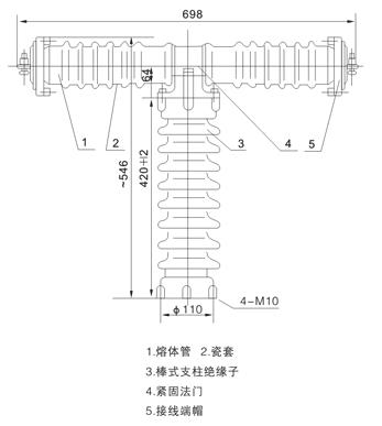 河間市天恒電力器材有限公司生產(chǎn)的熔斷器由熔體管、瓷套、緊固法蘭、棒形支柱絕緣子和接線端帽等組成。用壓裝的方法將兩端的接線端帽和熔體管固定在瓷套內(nèi)、然后用堅(jiān)固法蘭把瓷套固定在棒形支柱絕緣子上,其結(jié)構(gòu)說(shuō)明和外形尺寸如圖所示。 |