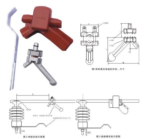 穿刺式防雷金具隨著電力的線路改造絕緣化,傳統(tǒng)的設(shè)計(jì),由于絕緣線路有先天不足的 耐雷水平,難以承受直接雷或感應(yīng)雷的作用,雷擊斷線已經(jīng)成為電力面臨的 又一個(gè)難題。穿刺式防雷金具的出現(xiàn),解決了這一難題,它具有安裝簡(jiǎn)便 (無(wú)需剝除絕緣層)。其原理為:將該金具安裝在線路絕緣子附近的絕緣導(dǎo)線 上,當(dāng)雷電過電壓超過一定數(shù)值時(shí),形成短路通道,連續(xù)的工頻電弧便在防 雷金具上燃燒,以保護(hù)導(dǎo)線免于燒傷。 穿刺式防弧金具,由穿刺電極、接地電極和絕緣罩三部分組成。其中,穿刺電極外形如 (圖1) 所示。
