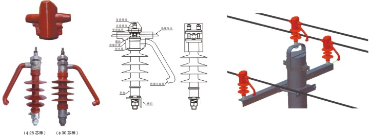 將本產(chǎn)品夾線槽對(duì)準(zhǔn)導(dǎo)線平行方向安裝在橫擔(dān)上,擰緊鋼腳螺母即可, 等同傳統(tǒng)的絕緣子的安裝方法;把引弧棒朝向負(fù)荷側(cè)。