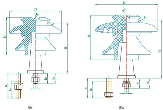 絕緣子按結(jié)構(gòu)形式分為:膠裝式和鋅套螺紋連接式兩種。膠裝式是瓷件直接膠裝水泥與腳連接,鋼腳膠入瓷件部分壓有深槽,以防鋼腳松動(dòng),鋼腳頂端與瓷件之間墊有彈性襯墊。鋅套螺紋連接式是瓷件內(nèi)孔先通過水泥膠裝以鋅螺套,再靠此螺套螺紋與鋼腳連接。鋅螺套有緩沖作用,也便于更換瓷件。也有采用靠瓷螺紋機(jī)械連接的。